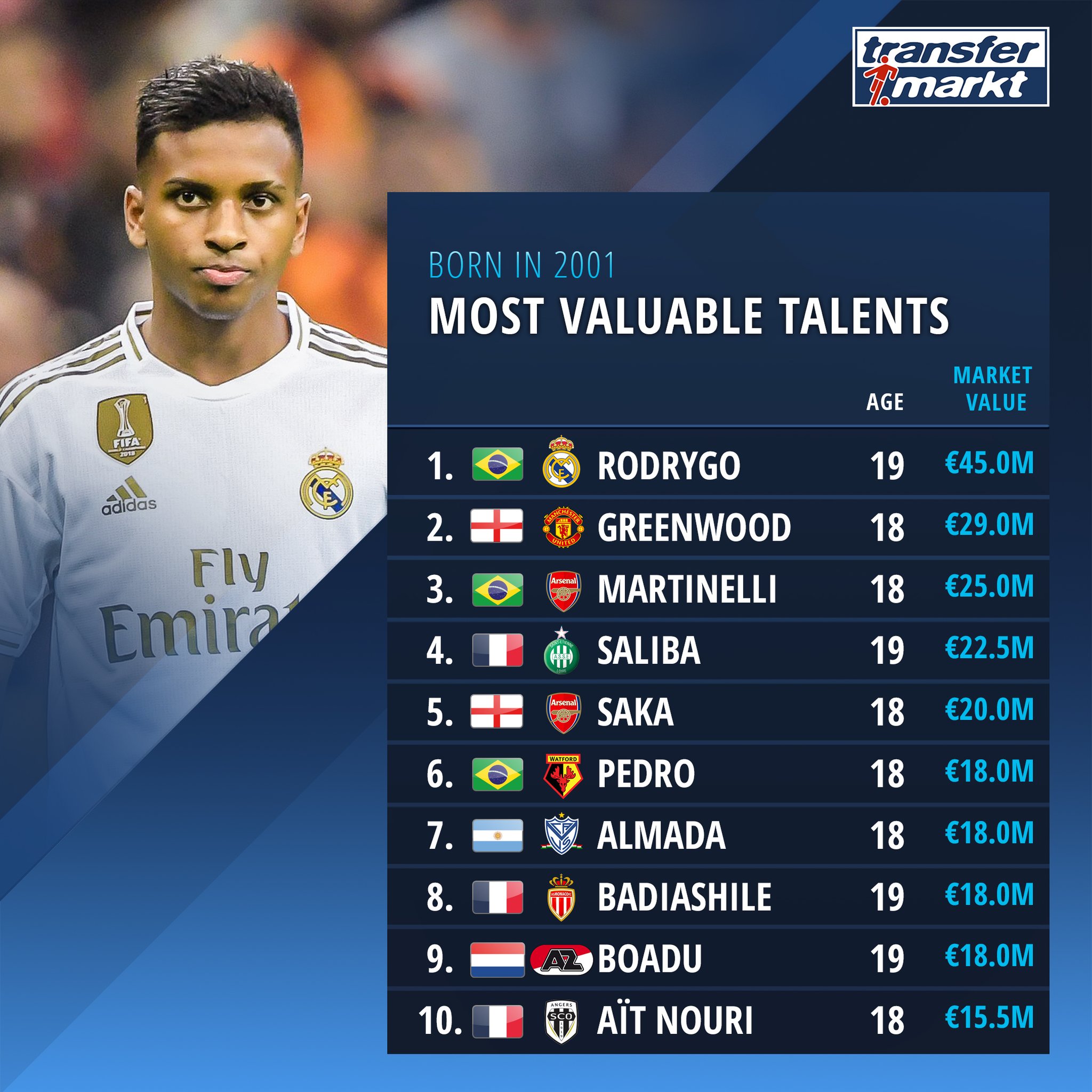 Transfermarkt Co Uk On Twitter Three Players Owned By Arsenal Make The Top 5 Complete Ranking Https T Co Fbvnpt7h37 Afc Coyg Mufc Watfordfc Realmadrid Asm Https T Co 2ao5qm9hgj